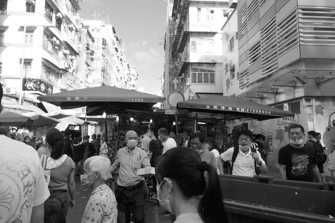 1.-5. Street campaigning and watched by bystanders, Sham Shui Po, Kowloon, Hong Kong, 14 June 2020. All photos: John Batten