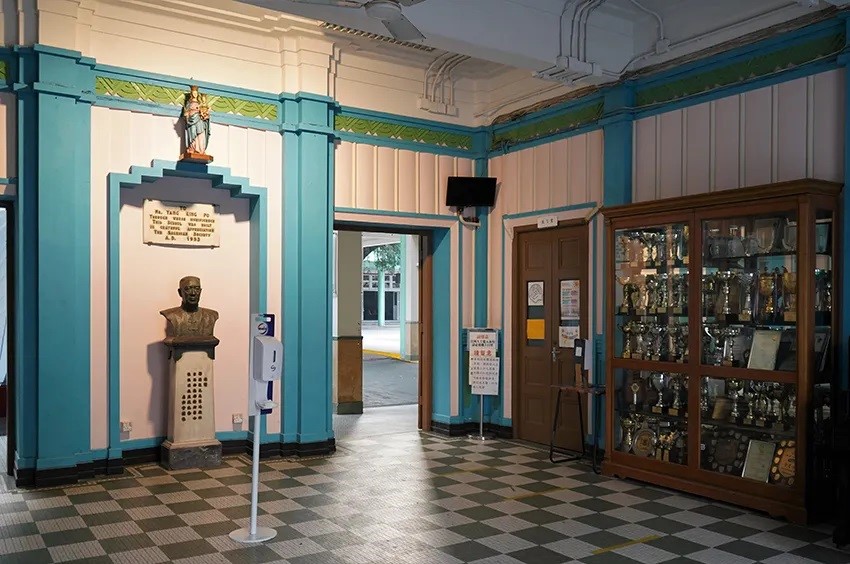 Entrance lobby of Tang King Po School, Ma Tau Wei, Kowloon, Hong Kong, 29 December 2021