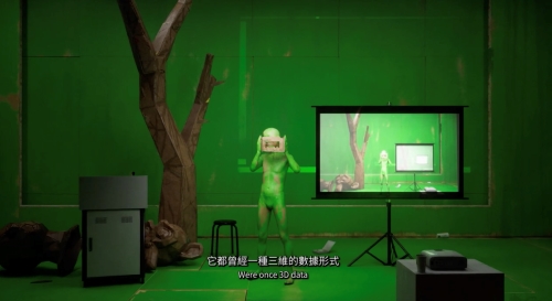 在《40年後,你在哪裡?》與《早安,青春肉體》,各自挪用公眾熟悉的媒體語言批判現狀。至於李亦凡的《難忘的形狀》則另闢蹊徑,努力探尋及創造新的媒體語彙。李亦凡的創作結合雕塑、繪畫與影像投影,拼湊出一種破碎、不完整的敘事場景,宛如創作過程留下的殘片。觀者透過這些殘片,能隱約感受到他在追尋敘事時的迷惘與渴求。當讀到策展人如是介紹李亦凡的創作路徑,「他竭力開發自己的錄像製作軟體工具;這是一套自行打造的個人化系統,但其展現的能力卻可與資源豐沛的數位特效產業匹敵」,直覺得他跟台灣前輩藝術家高重黎是一路的:對機具、影像生產與權力制宰的深切反思。《難忘的形狀》亦如是,敘事上大抵設定為一場類似破敗科技產品的發表會,一方面描繪主角在為而設計的軟體工具所衍生出的社會與倫理問題中掙扎,另方面也側寫電腦軟體產業的政治經濟學。