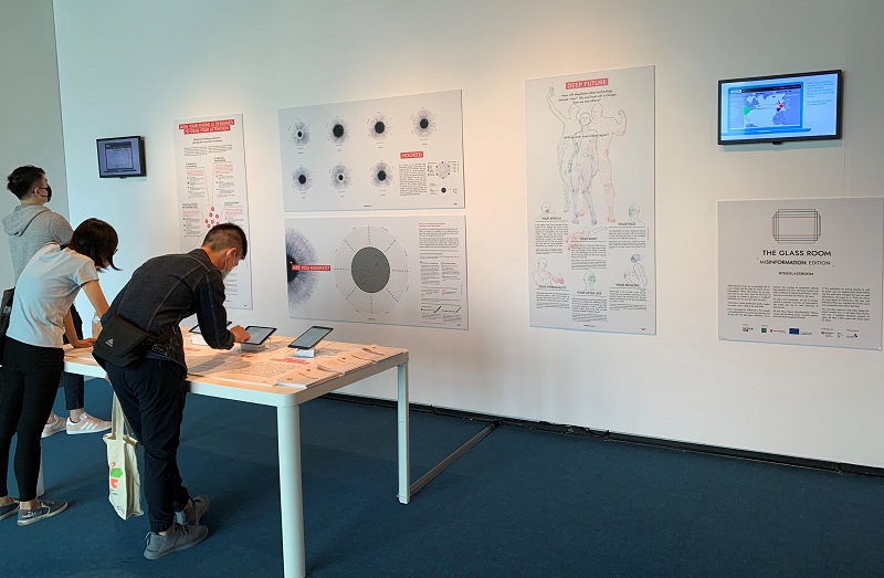 德國戰略技術的《玻璃房間:錯誤信息版》則運用多部平板電腦,引領觀眾進行選擇題,發現社交網絡怎樣擷取個人信息進行演算,用作商業營銷;同時又圖文並茂,仔細講述智能電話如何「操控」我們的行為,所有人的生活都完全離不開這部小裝置。台灣陶亞倫的《徘徊的幽靈No.5》讓觀眾帶上虛擬實境頭盔,瞬間進入平凡小房間,腳下的動力平台突然一動,觀眾向上升空,進入可怖詭異的紅色空間,仰望中央那一座彷彿在忙碌運作的巨大機械。當觀眾還猶豫在虛與實之間,便已繞了一圈,然後不從原有洞口下降,而是莫名其妙地穿破天花,回到四面牆內。